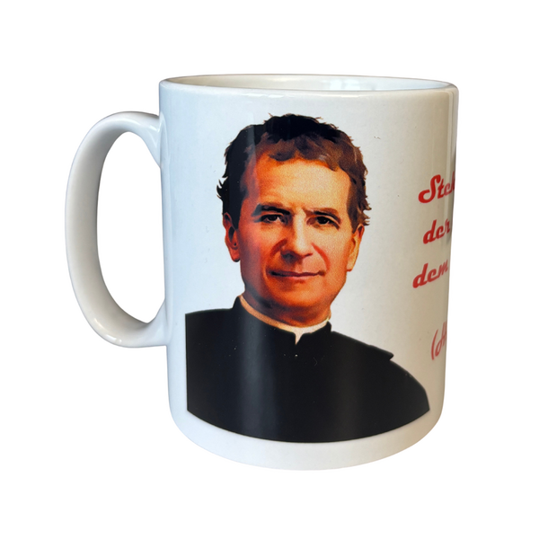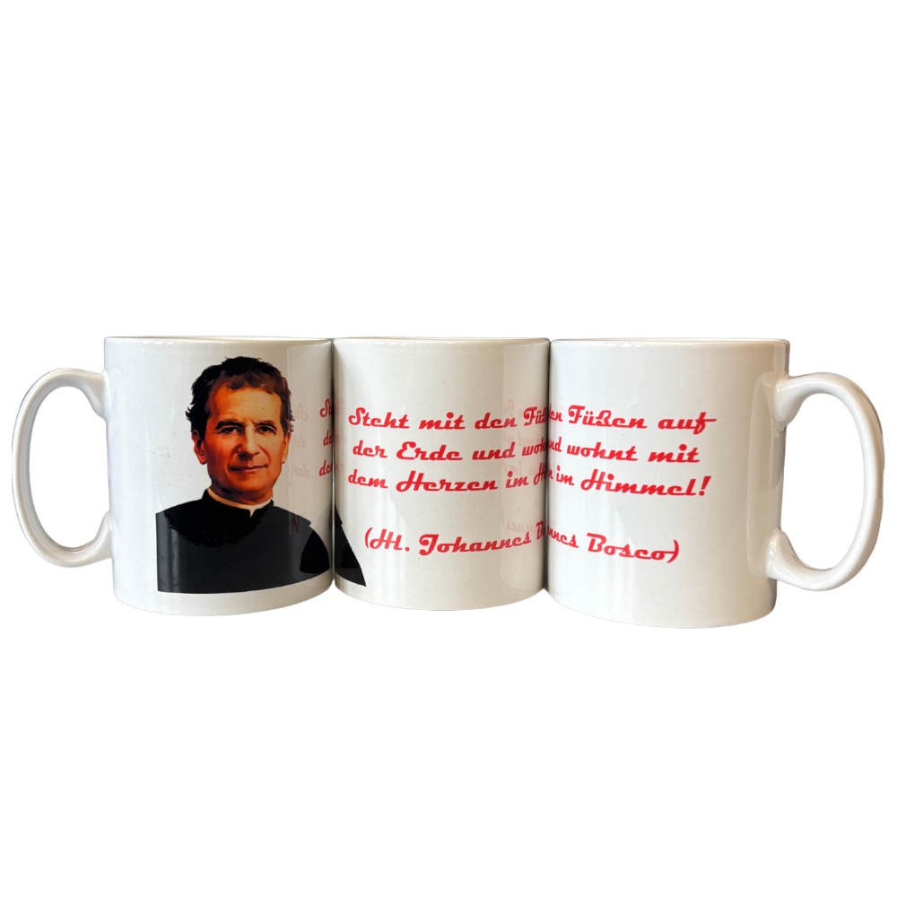Vorne finden Sie den Spruch von Don Bosco „Fröhlich sein, Gutes tun und die Spatzen pfeifen lassen.“, auf der Rückseite befindet sich das neue Don Bosco Logo.
